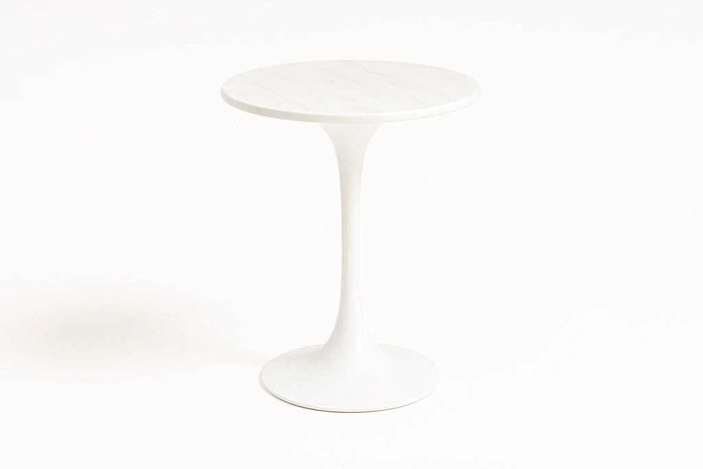Mesa Lateral Redonda Saarinen com Tampo de Mármore Branco Extra de 51cm